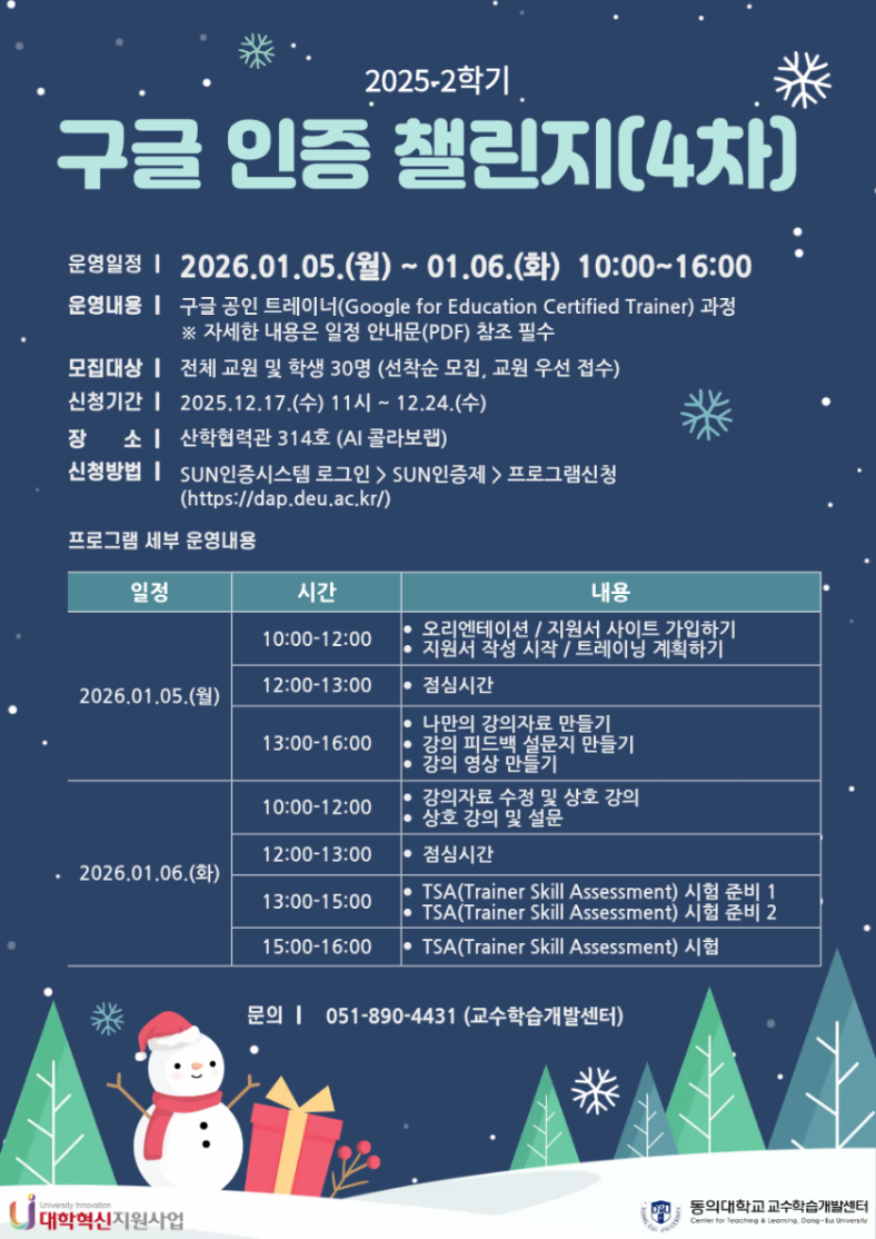 [교수학습개발센터] 2025-2학기 구글 인증 챌린지 (4차, 트레이너 과정) 프로그램 모집 안내